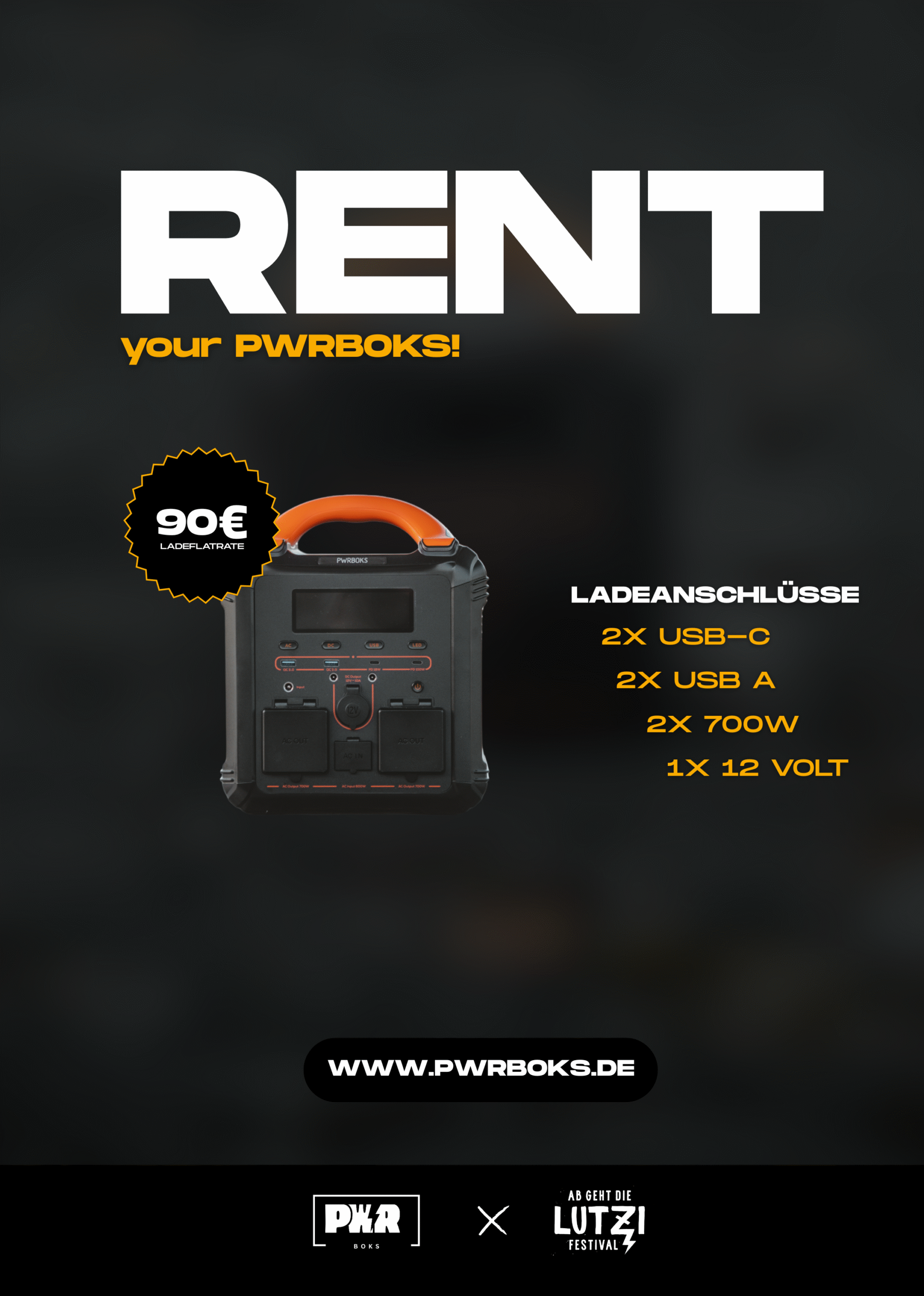 Miete deine PWRBOKS inklusive Ladeflatrate für das Festival 2026.